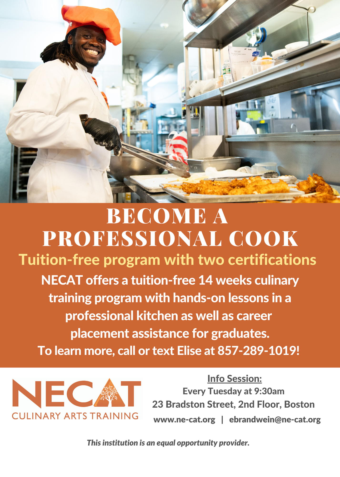 NECAT provides its culinary job training curriculum at three locations: the Boston Training Center, the East Boston YMCA, and at the Suffolk County House of Correction (not a SNAP Path to Work location).